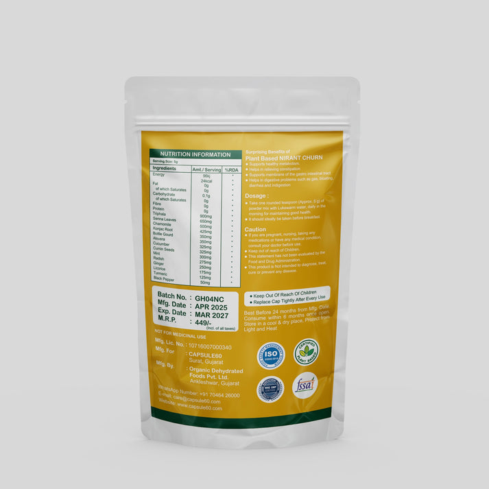 Nirant Churn Powder is made from 100% natural ingredients and is generally safe. However, consult a healthcare professional if you have specific health conditions.